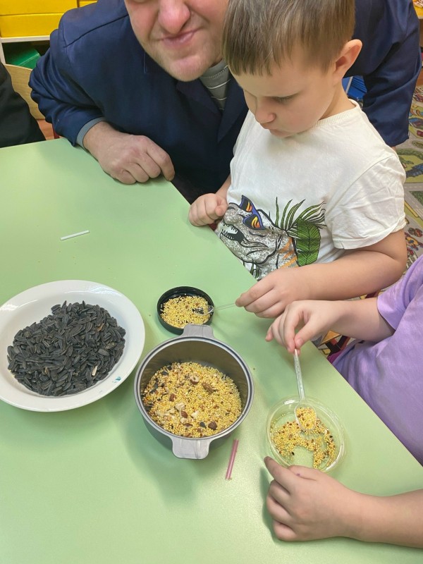 27 января в подготовительной к школе группе Лучик состоялся мастер-класс с родителями "Делаем экокормушку!".