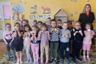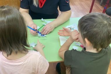 18 марта в подготовительной к школе группе "Лучик" прошёл мастер-класс по изготовлению световозвращающих элементов. Ребята с удовольствием принялись вырезать светлячки для себя и своих родных, пообещав обязательно прикрепить на одежду. Автоинспектор Лидия Борисова напомнила о самых основных правилах дорожного движения в весенний период. Вместе повторили правила движения для велосипедистов, пешеходов, играли в игры, отгадывали загадки о дорожных знаках и правилах безопасности на дороге.