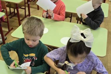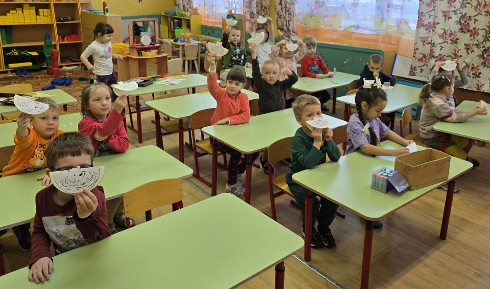 В конце мероприятия ребята сделали из картона и бумаги белого медведя, дрейфующего на льдине.