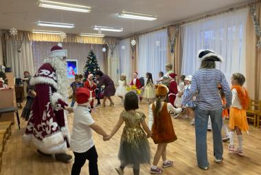 В гости к ребятам пришли Зимушка-Зима, пиратка Лора, и, конечно же, Дед Мороз! Захватывающее новогоднее приключение со сказочными героями очень понравилось детям. Ребята приняли участие в видео-разминке и космической видео-игре «Бегалки», играли со снежками, исполнили новогодний игротанец, победили пиратку в игре "Моталочка". В завершении праздника дети исполнили веселые танцы вместе с Дедом Морозом и получили долгожданные подарки, которые им выдал волшебный чудо-аппарат!!!