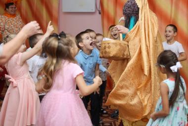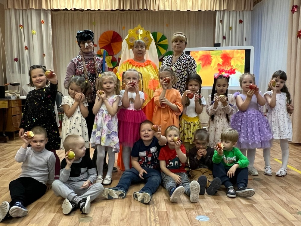 Сказочные персонажи - Осень и Баба Яга - порадовали играми и веселыми шутками. Но и, конечно, какой праздник без угощения? Осень принесла детям всех возрастных групп вкусные яблочки. Праздники доставили радость и удовольствие всем его участникам!