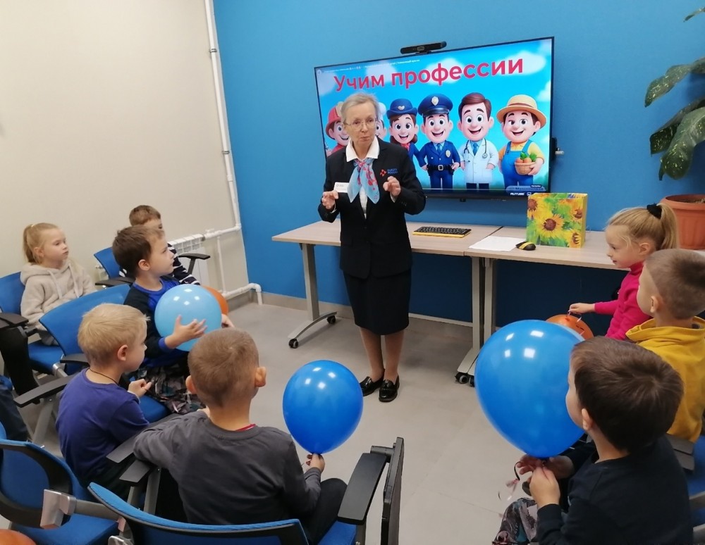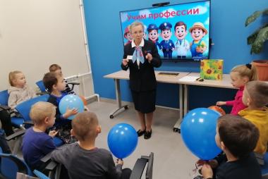 Профконсультант Людмила Николаевна Хребтова пригласила ребят в путешествие в Страну профессий, во время которого они отгадывали загадки, играли в игры, вспоминая представителей разных профессий и названия мест, в которых они работают, рабочие инструменты и рабочие действия. Яркий мультфильм о людях разных профессий заворожил ребят, они смотрели его очень внимательно и с большим интересом. Сюрпризом для детей стали подаренные им воздушные шары и настольная игра.
