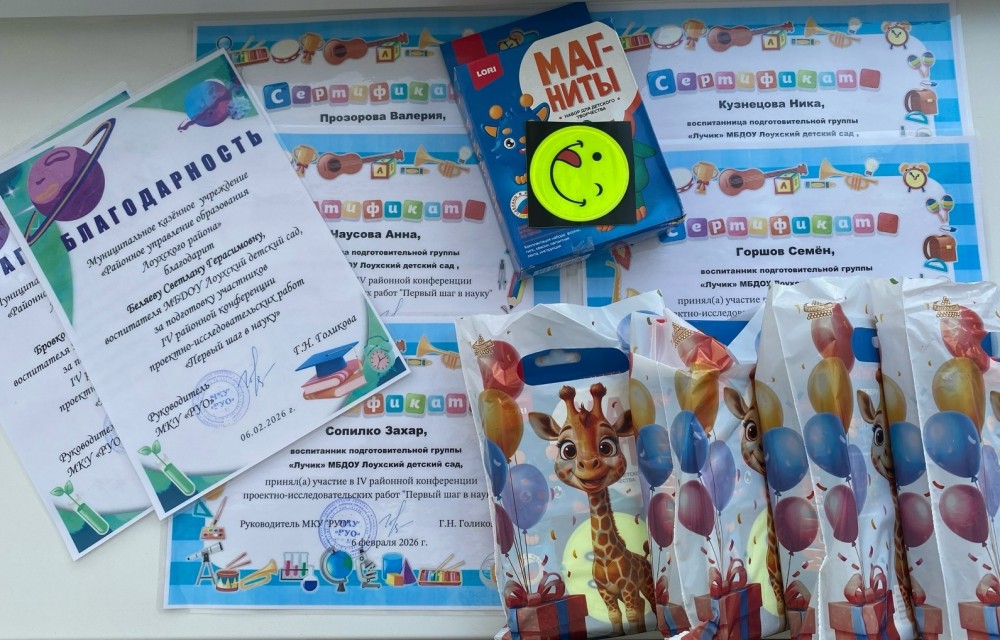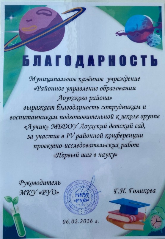 Поздравляем победителей районной конференции проектно-исследовательских работ "Первый шаг в науку" подготовительную к школе группу Лучик!!!